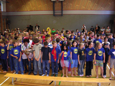 Eigentlich hätten auf dieser Seite alle 300 Kinder der Schule einen Platz finden sollen, leider können wir nur stellvertretend einige von ihnen abbilden. Wer trotz seiner tollen Leistung - und ALLE KINDER haben Hervorragendes geleistet - hier nicht abgebildet ist, war oft nur einen Meter zu weit vom Objektiv des Fotoapparats entfernt oder er/sie findet sich auf der Proben- oder Aufführungsseite wieder.