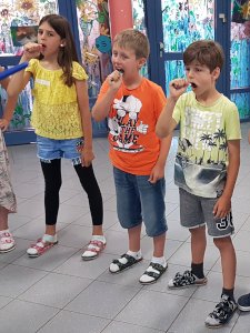 Jedes Jahr findet an der Volksschule Mondweg ein Zahngesundheitsworkshop für alle Klassen statt. Zähneputzen will gelernt sein!