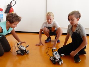 Hier zeigt Hr. Georg Richter, ein richtiger Roboter-Enthusiast, was Kinder - aber auch Erwachsene - mit Robotern so machen. Wir haben's mit Lego Mindstorms Robotern ein bisschen ausprobiert.