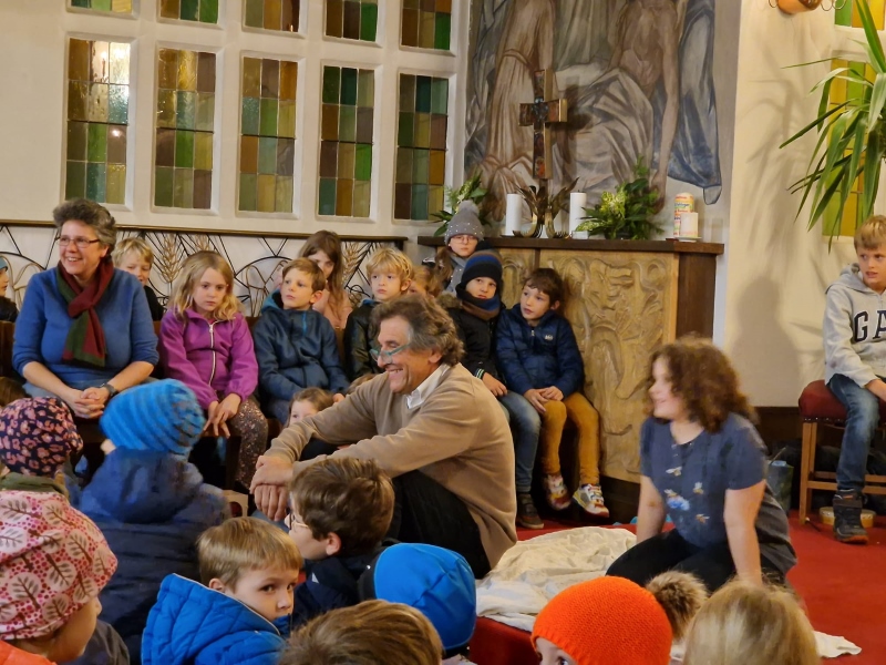 Wie jedes Jahr feierten wir auch heuer gemeinsam das Fest des Heiligen Martin. Nach der Begrüßung und einem Lied, waren es Kinder der 4.a Klasse, die uns mit einem Martinspiel die Erfahrung des Bettlers am Stadttor von Amiens vorspielten, begleitet von unserem gemeinsamen Gesang. Dann ließen wir unsere Lichter in den Laternen erstrahlen, ausgehend von der Osterkerze, zum Zeichen für unsere Bereitschaft, wie Jesus und der Heilige Martin das Leben fördern zu wollen und Licht, Freude und Glücksbringer sein zu wollen. Bei unserem Lichterumzug, bei dem alle das Laternenlied sangen, bezeugten wir das in aller Öffentlichkeit. Wir gingen ausgehend von unserer Pfarrkirche über die Anzbachgasse und dem Mondweg bis in unseren Schulgarten. Dabei ein DANK an unsere Polizei, die uns ein gesichertes Geleit gab. In einem stillen Lichterkreis in unserem Schulgarten, der zum Staunen und Danken einlud, wie viele Menschen mit mir bereit sind, Lichtbringer und Freudenbringer zu sein, wurde die Zeichenhaftigkeit des Festes noch einmal für alle offensichtlich. Dabei sangen wir „Ich tragen ein Licht in die Welt hinein".