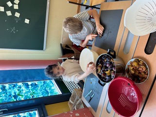 Diesmal haben wir Zwetschkenmarmelade gekocht. Alle haben mitgeholfen.