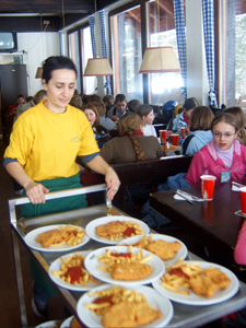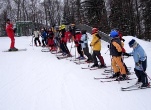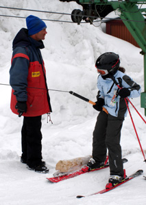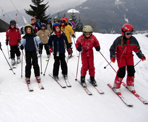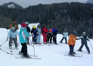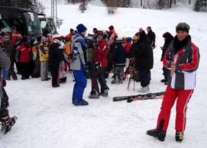 Vor der Abfahrt werden uns die Pistenregeln erklärt.