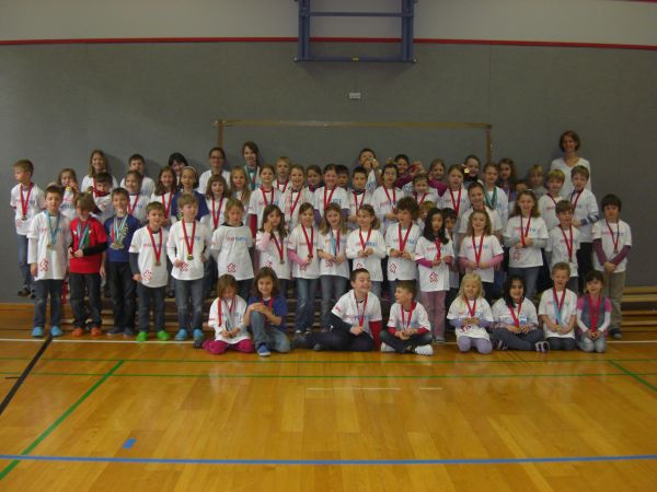 Bei der Siegerehrung im Turnsaal unserer Schule wurden alle LäuferInnen gefeiert.