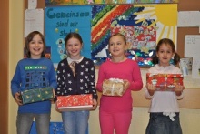 Auch in diesem Jahr habt ihr, die Kinder und Eltern der VS Mondweg, Kindern, die sonst kein Weihnachtsgeschenk bekommen hätten, ein solches gemacht. 57 Schuhkartons und ca. 306€ konnte ich in eurem Namen weitergeben. Damit seid ihr zu Licht- und Freudebringern für ebenso viele Kinder geworden. Dafür ein vom Herzen kommendes DANKE!!!