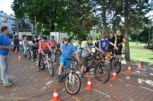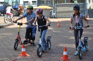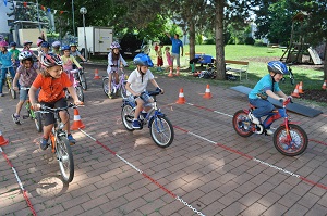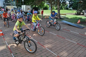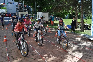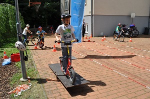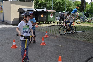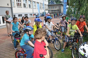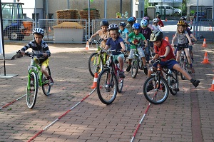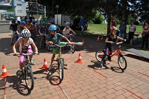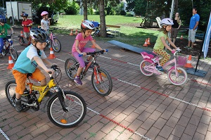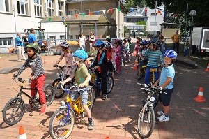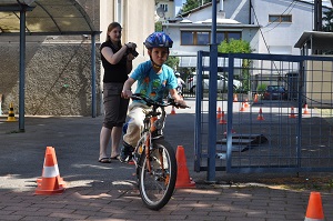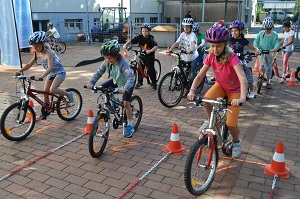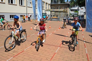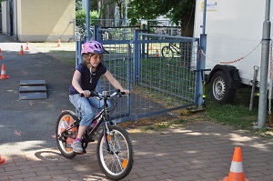 Danach, am Aktionstag selbst, konnte jedes Kind eine Stunde lang über einen Parcours, der mit verschiedenen Hindernissen versehen war, seine Fahrkünste ausprobieren und verbessern. Dabei, waren das Schneckenrennen und die „Hochgeschwindigkeitsstecke mit dem zielgenauen Stopp" die beliebtesten Stationen. Währendem die Kinder fuhren, checkte unser Radworkshoptrainer die Räder und Helme der Kinder in der „Box". Jedes Kind nahm ein Zertifikat über seine Ausrüstung mit nach Hause. Da auch das Wetter mitspielte, war es für alle Klassen eine gelungene und abwechslungsreiche Unterrichtsstunde der anderen Art.